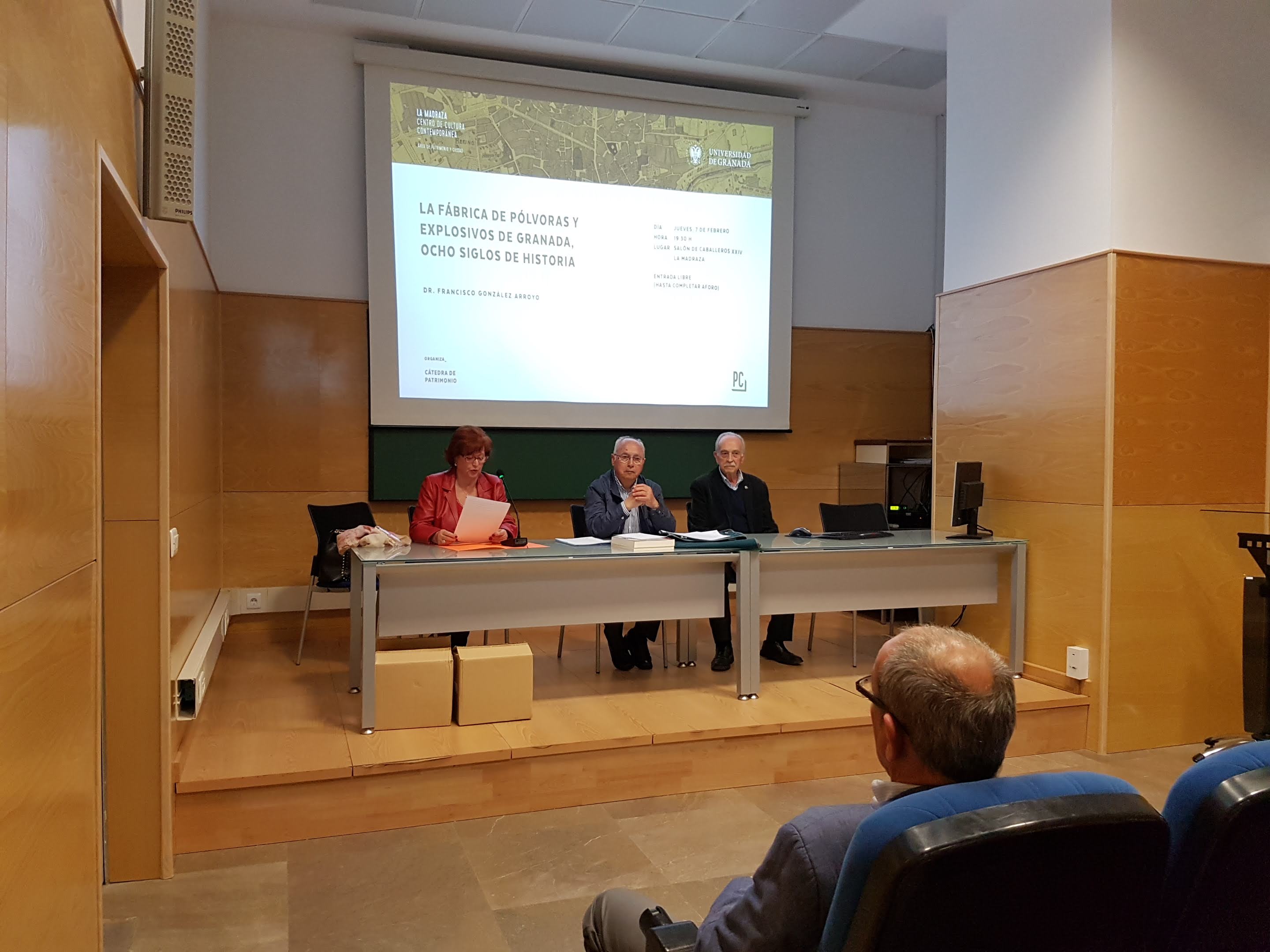 Este último jueves de Marzo, el Doctor en Historia D. Francisco González Arroyo nos ha dado una magnífica conferencia sobre un lugar en el que muchos granadinos no caemos en mirar o recordar y que aún sigue funcionando en nuestra ciudad, se trata de la Fabrica de Pólvoras y Explosivos de Granada situada en el Fargue. Ha sido todo un descubrimiento para los asistentes conocer el pasado de esta institución, y la importante relevancia que ha tenido en su larguísima historia, no solo para Granada, sino para toda la nación.