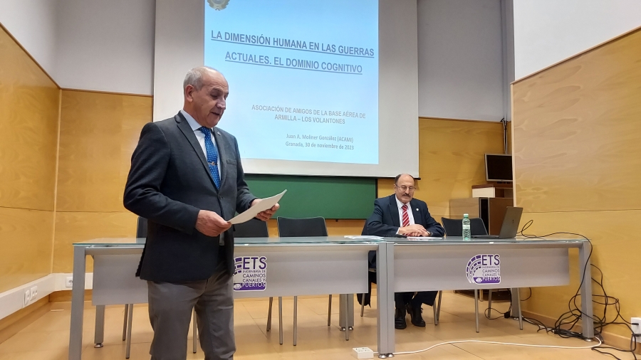 El General Moliner en la actualidad es Vicepresidente de la Academia de las Ciencias y las Artes Militares, y Profesor del Instituto General Gutiérrez Mellado, y nos ha presentado una conferencia con el titulo «LA DIMENSION HUMANA EN LAS GUERRAS ACTUALES. EL DOMINIO COGNITIVO». Ha sido una puesta en situación de los conflictos actuales y de cómo se están desarrollando en el aspecto humano que hemos entendido gracias a la magistral forma de explicar del ponente.